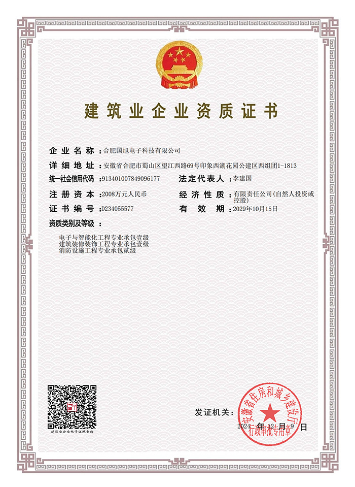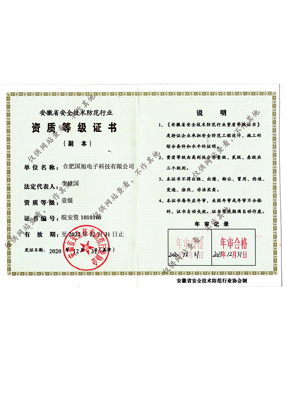 公司現(xiàn)已獲得承裝(修、試)電力設(shè)施許可證、電子與智能化工程專業(yè)承包壹級(jí)資質(zhì)、建筑裝修裝飾工程專業(yè)承包壹級(jí)資質(zhì)、消防設(shè)施工程專業(yè)承包貳級(jí)、安全技術(shù)防范行業(yè)壹級(jí)資質(zhì)、雷電防護(hù)裝置檢測(cè)資質(zhì)證乙級(jí)資質(zhì)、安全生產(chǎn)許可證、通過(guò)ISO9001:2015質(zhì)量管理體系認(rèn)證、ISO14001:2015環(huán)境管理體系認(rèn)證、OHSAS18001:2007職業(yè)健康安全管理體系認(rèn)證等榮譽(yù)。我們還將進(jìn)一步努力,爭(zhēng)取贏得更多的榮譽(yù)。
