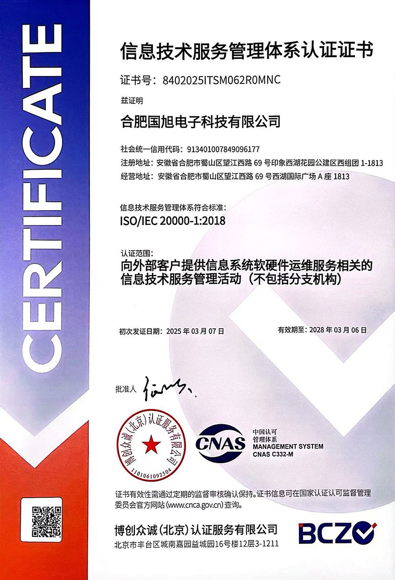 合肥國(guó)旭電子科技有限公司創(chuàng)立于2006年,總注冊(cè)資本2008萬(wàn)。公司總部地址位于安徽IT主流商圈核心,合肥市蜀山區(qū)望江西路與肥西路交口西湖國(guó)際廣場(chǎng)。 公司是專業(yè)從事智能防雷檢測(cè)系統(tǒng)、智能化工程設(shè)計(jì)與施工工程、防雷設(shè)計(jì)施工工程、數(shù)據(jù)中心機(jī)房、消防工程、網(wǎng)絡(luò)監(jiān)控安全技術(shù)防范工程、及智能變電站安全預(yù)警系統(tǒng)。